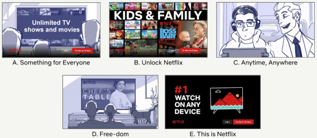 We learned that concepts that were more informative about Netflix's service performed better. Also, showcasing the breadth of content helped participants better understand Netflix. A range was more compelling than a significant focus on a particular popular title.