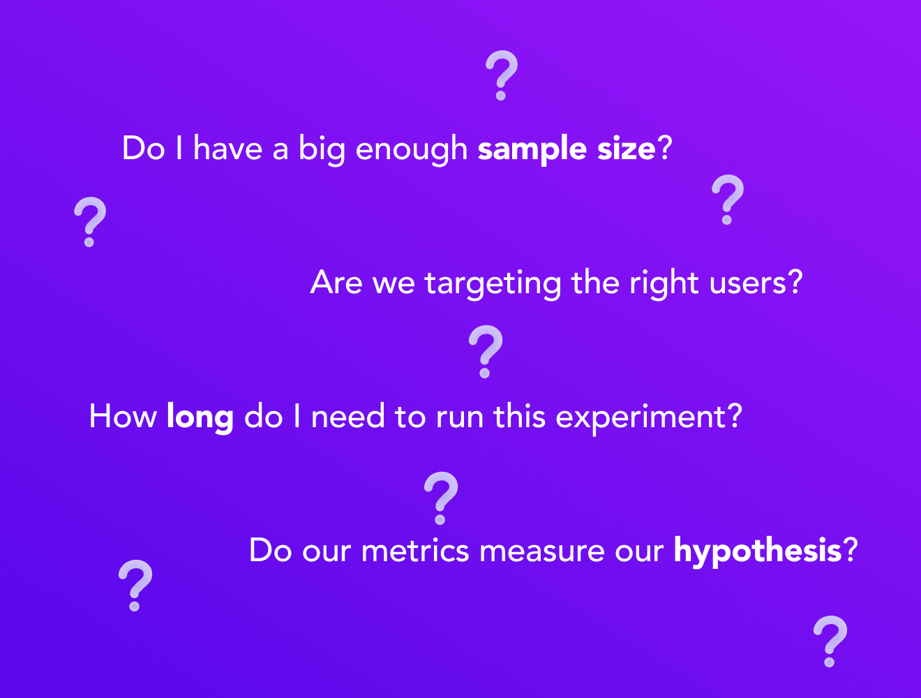 You need a large enough sample size and clarity around your metrics for a useful experiment. You may need to run the experiment longer than you think depending on where the change is in your product, as well as the metrics you’re measuring.
