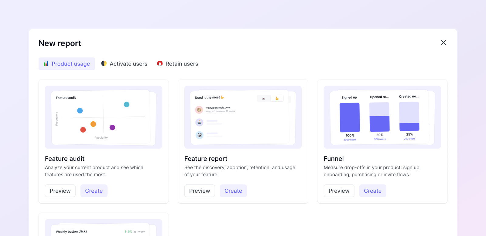 The core of our product is now 5 auto-generated reports that are useful for every Saas company. Product sprawl is the enemy.