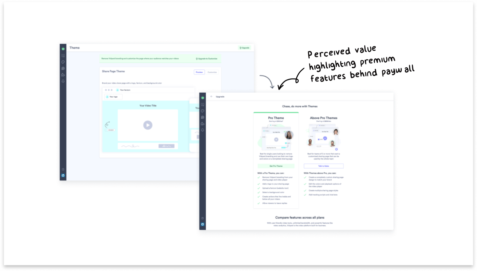 Tactic: Give perceived value by highlighting premium features behind paywall. Use anchoring to present several options and visually draw attention to the desired plan.