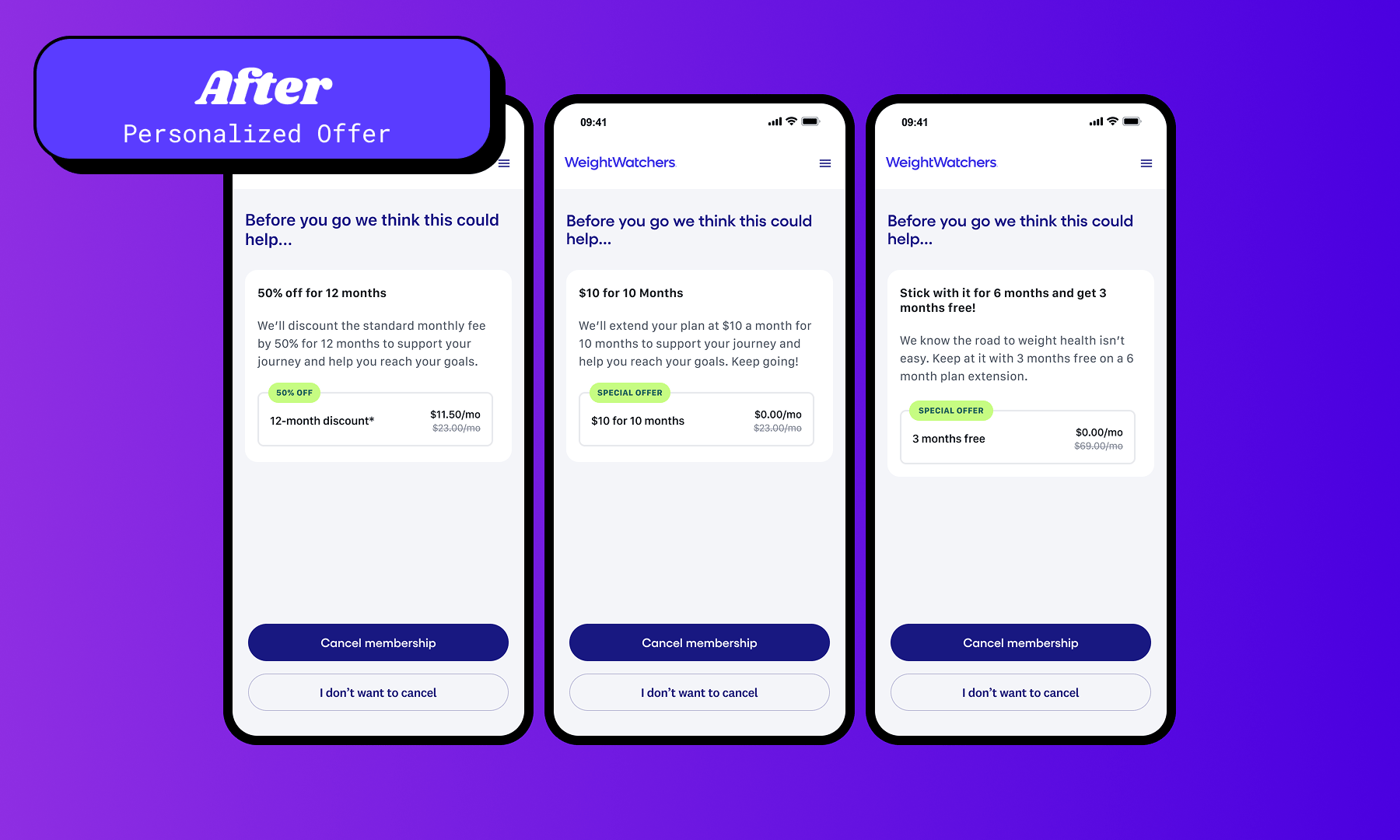 Reframing matters. Positioning the offer as a way to “get back on track” was far more effective than just “we’ll miss you—how about this discount?”.