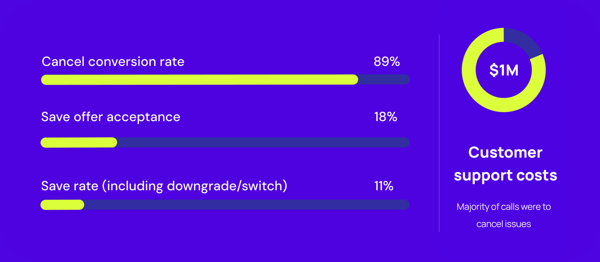 The cancellation baseline showed opportunity for improvement to reduce support costs and increase save rate.