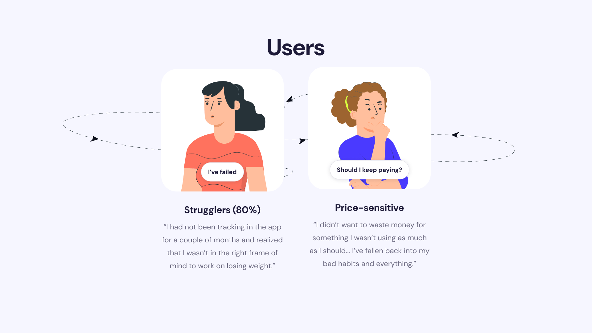 Users enter a cycle of lost motivation, self-blame and price sensitivity.
