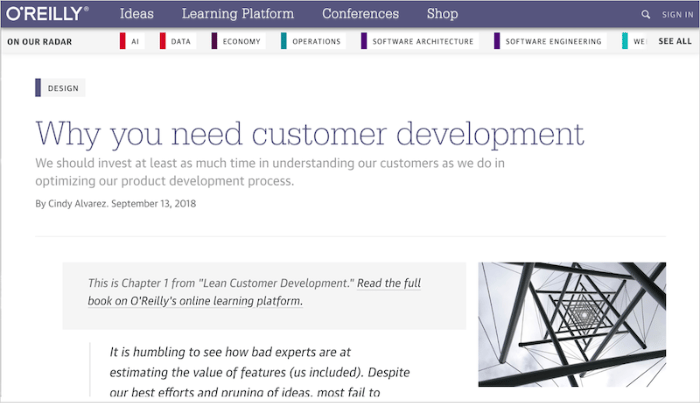 The Origin of Customer DevelopmentSteve Blank is known as the originator of customer development. He famously coined the phrase “get out of the building” and paved the way to the lean startup movement. His customer-centric approach became a substantial shift in how founders were looking at their businesses. Instead of guessing what customers would want, need and buy, you could understand how your product fits into their life. He wrote about this new approach to startups in his book, The Four Steps to the Epiphany. Here’s an excerpt from Blank’s 2013 piece in the Harvard Business Review on how the lean startup movement took off: